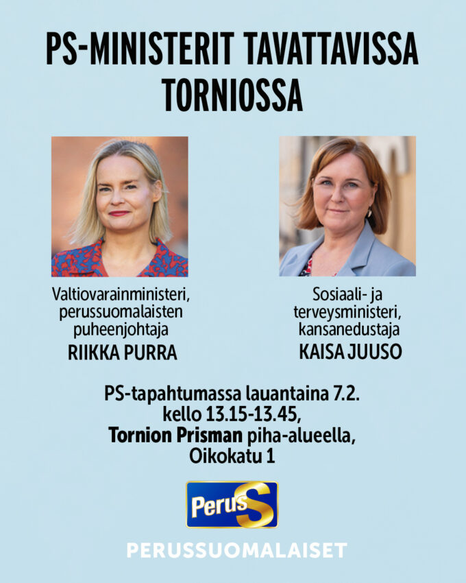 Valtiovarainministeri, perussuomalaisten puheenjohtaja Riikka Purra vierailee Rovaniemellä ja Torniossa 7.2.2026.