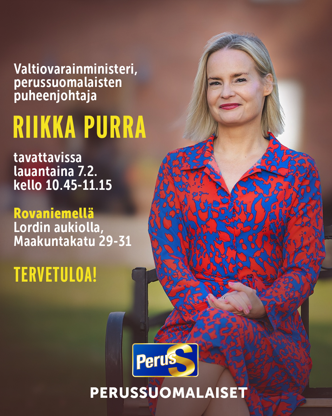 Valtiovarainministeri, perussuomalaisten puheenjohtaja Riikka Purra vierailee Rovaniemellä ja Torniossa 7.2.2026.
